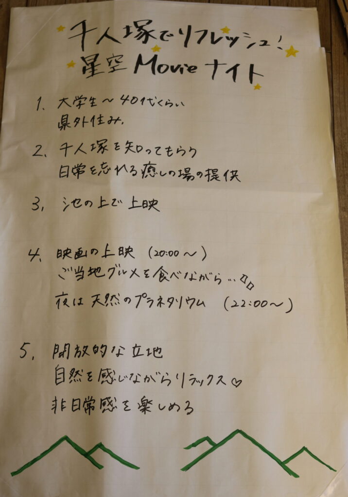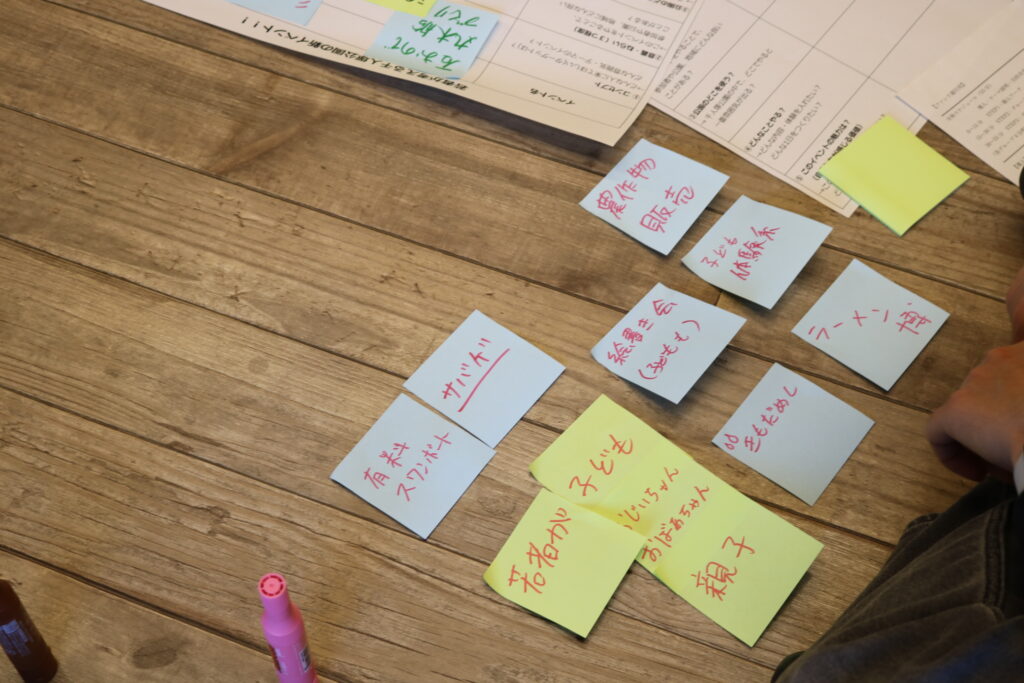今回の交流会では、若者が考える「千人塚公園で出来るイベントを考える」をテーマにグループワークを行いました。
